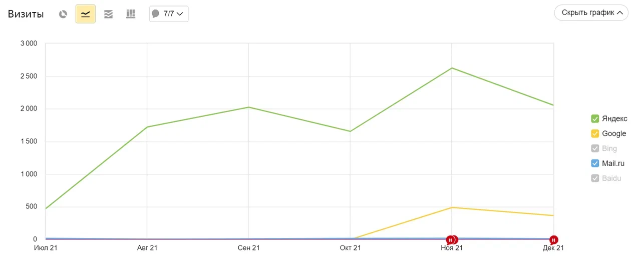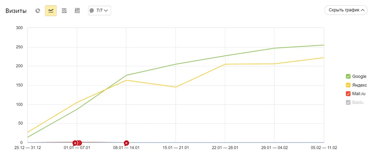 - Контроль и удержание позиций в поисковых системах Яндекс и Google