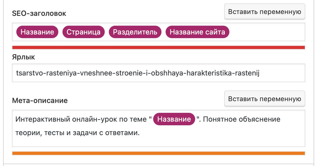 - В поле «Meta description» ввести текст дескрипшена для вашей страницы. Используйте переменные: %%title%%, %%sitename%%, %%sep%%.