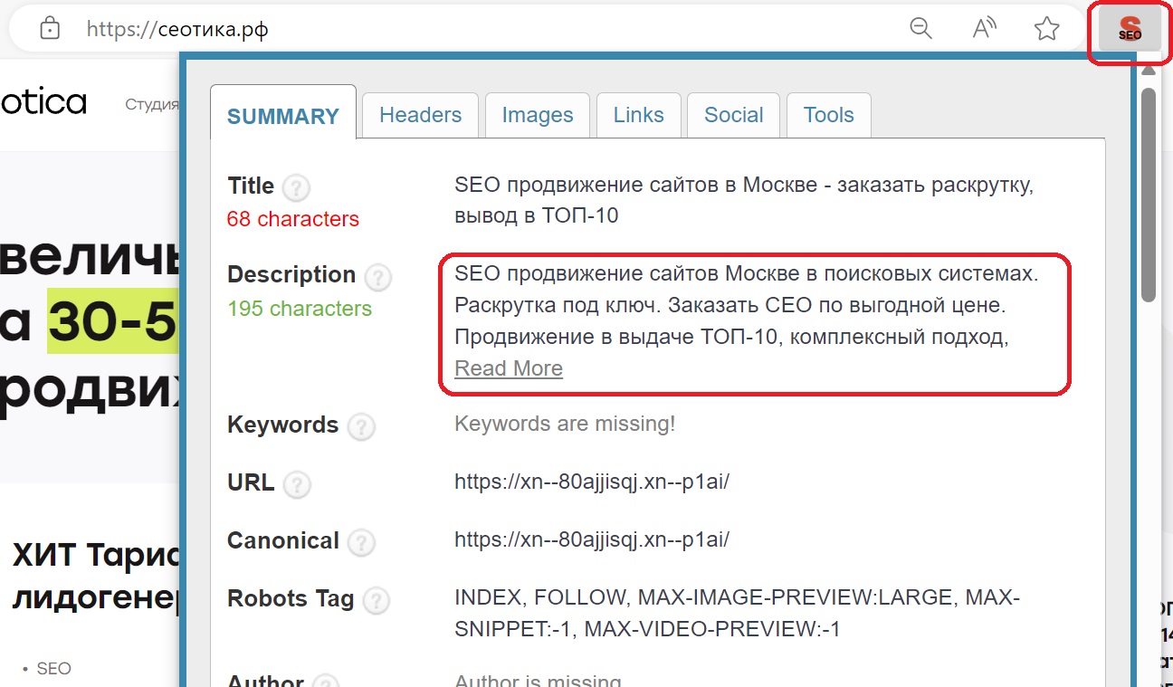- Использовать онлайн-сервисы, программы или расширения для браузера, которые позволяют проверить дескрипшн. Мы расскажем о них подробнее.