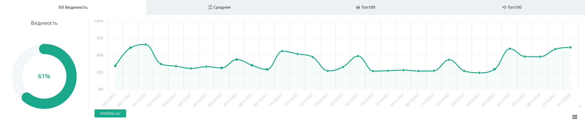 Видимость сайта в поисковых системах увеличилась до 61%.